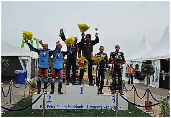 Zondag 1e Pinksterdag race 1 stonden Jarno Keppel en Freek Dirksen, nadat ze twee kwalificatie ronden gereden hadden op een 2e startplaats. Ze hadden een super start waar ze meteen hun 2e plaats vast konden houden. Kentrop/Daalhuizen sloegen een gat van 5 seconden. Jarno dacht het is beter om nu safe te rijden want het duo Kentrop/Daalhuizen hadden een valse start gemaakt die daarvoor 20 strafseconden kregen. En zo stonden ze daardoor uiteindelijk toch nog op een 1e plaats waardoor de vreugde nog groter was. Hun eerste keer podium plaats nr.1.