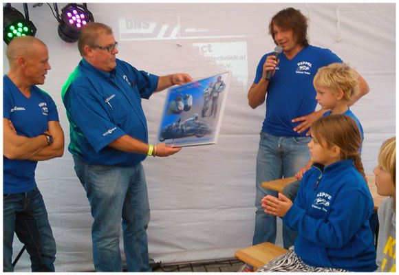 Het was een prachtig weekend, want naast de uitstekende resultaten bracht Henk Vis in de VTS-Tours beschikbaar gestelde bus, ruim 50 gasten naar de KST Sponsor/Relatiedag. Met gezellige achtergrond muziek van Gosé Bekenkamp en Jeantine de Kruijf & Margo Schutte als gastdames/Grid-Girls, werd hoofdsponsor Nico van Vliet en andere aanwezige sponsors een prachtige fotocollage (Hero Drent) overhandigd.